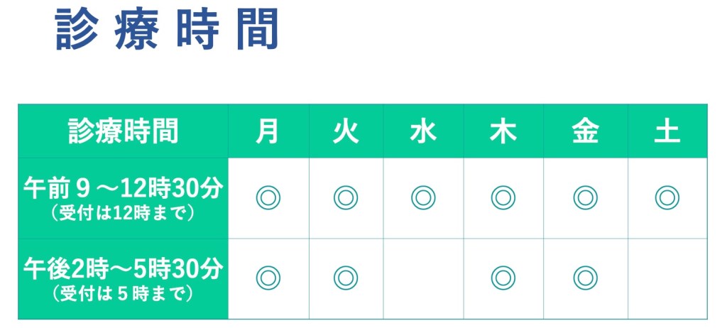 休診日 : 日曜・祝祭日 水曜午後・土曜午後