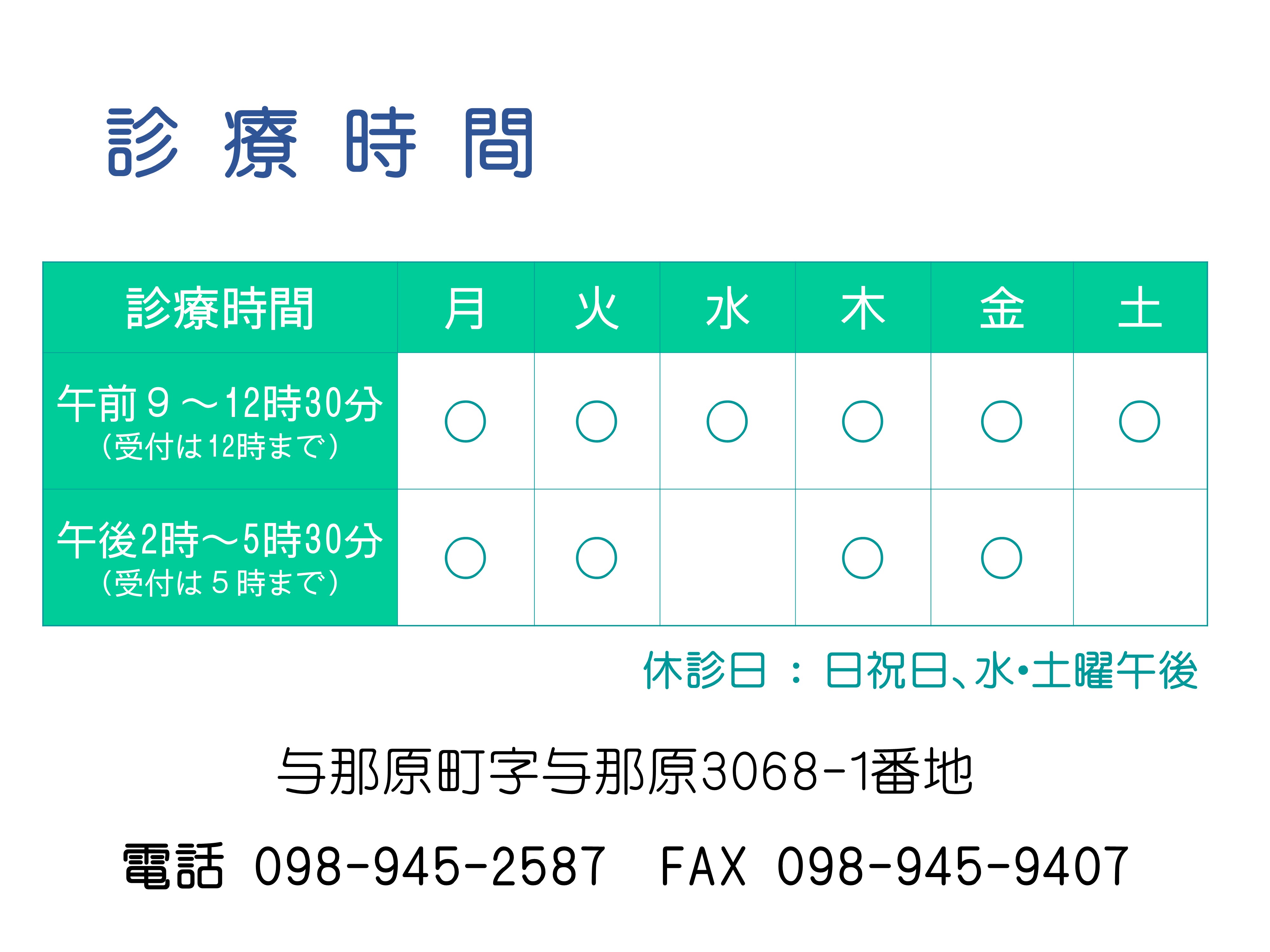休診日:日祝日 水曜午後・土曜午後